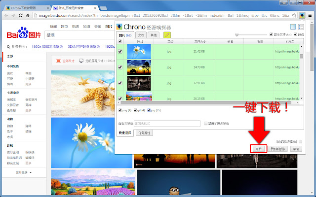 除了高效管理下载任务,Chrono也是你下载视频或批量下载图片的最好帮助工具。Chrono资源嗅探器可以检测网页上的所有链接、图片、音频和视频,你还可以根据链接的文件类型或正则表达式来筛选你要下载的地址。