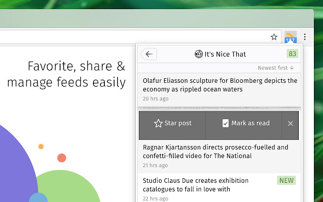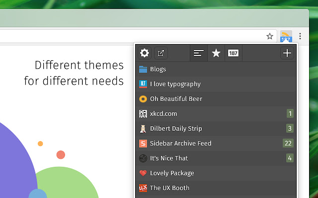 - 在弹出菜单中右键单击上下文菜单,让您将所有内容标记为已读、重新加载提要和其他漂亮的快捷方式