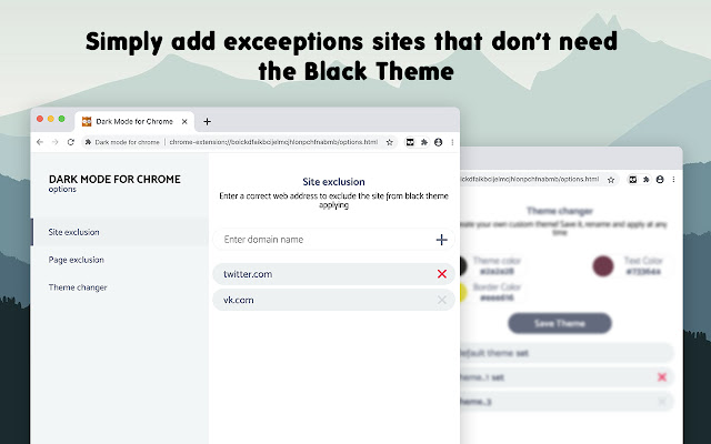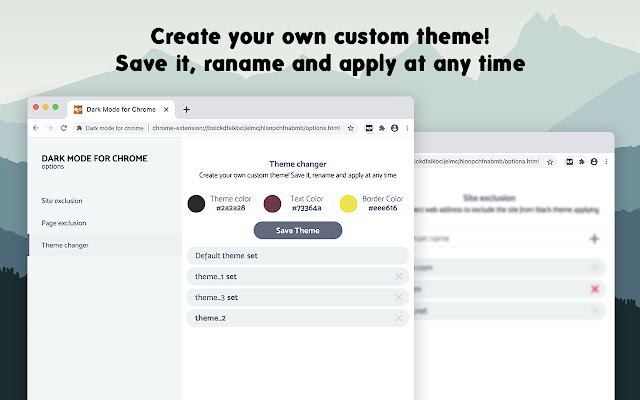 将浏览器中的所有网站应用到深色主题中,并从黑色主题中排除任何域以获得更好的体验。可以使用您喜欢的任何颜色创建您自己的自定义主题。