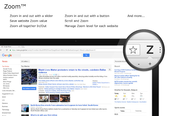 它可以帮助您轻松放大和缩小网页。感谢滑块和缩放按钮。它是自定义该网页缩放值的第一和最佳放大浏览器扩展程序。