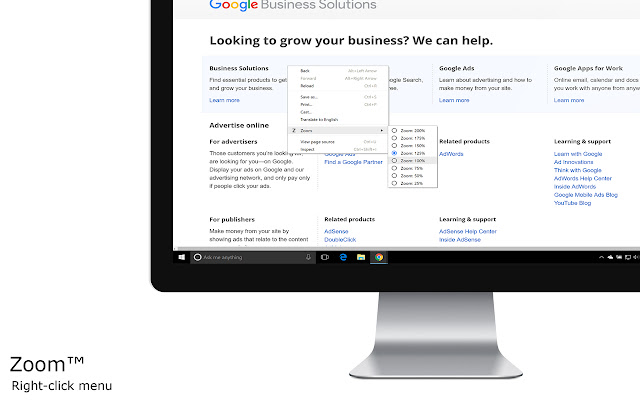 这将在 Web 浏览器上下文菜单中添加所有缩放百分比级别。