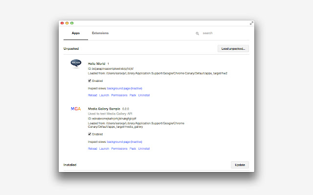 - 解压的应用程序/扩展程序的单独视图