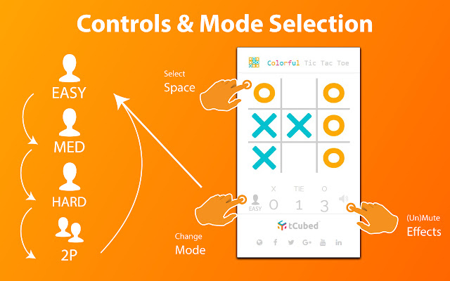 以单人游戏模式与 AI 玩家或以两人模式与您的朋友和家人玩井字游戏(又名 Noughts and Crosses、三连胜、tres en raya)。