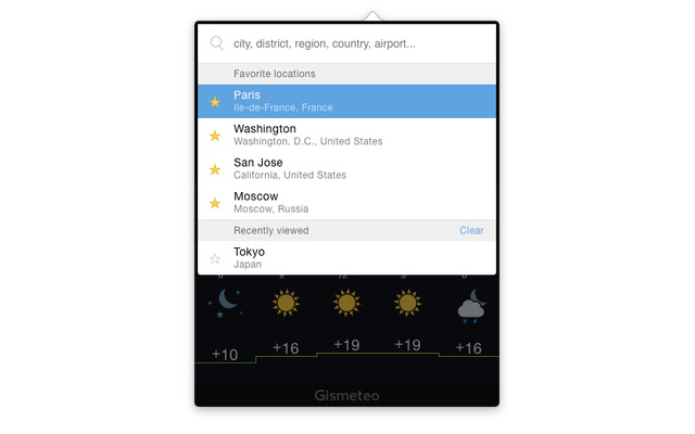 工具栏中的图标显示您最喜欢的地方最近时间的实时天气或预报。单击图标,您将获得详细的预测。