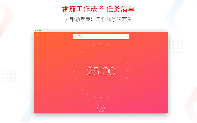 帮助您专注于当前的工作和学习,基于番茄工作法,待办任务清单结合番茄钟计时器,绝佳的时间管理效率工具,帮助提高自律,摆脱拖延。