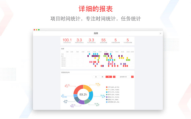 - ?报表:记录自己点滴的成长历程,记录所有的任务和专注时间