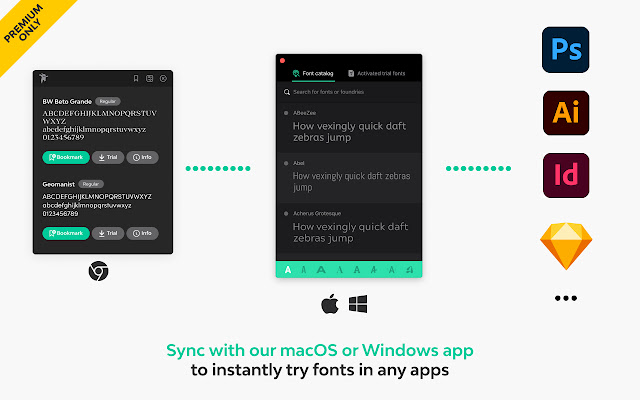 可选的 macOS/windows 应用程序会安装您在网站上发现的字体的试用版。然后,您可以在任何软件中使用它们。