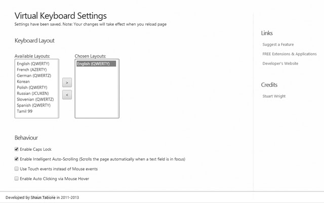 此扩展非常适合触摸屏设备。该键盘的工作原理类似于 iOS/Android/Windows 8 触摸虚拟键盘。