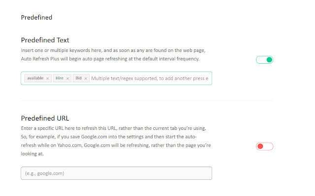 一旦在网页上找到某些特定文本,此功能就会开始刷新网页。要使用它,只需在设置页面上插入一个或多个关键字即可。一旦此文本出现在网页上,ARP 将开始以默认时间间隔自动刷新它。