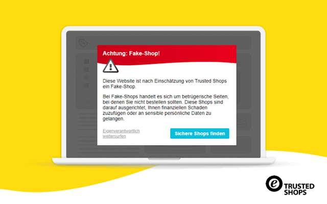 此外,当您进入 Trusted Shops 归类为欺诈的商店时,您会收到一个弹出窗口的积极警告。