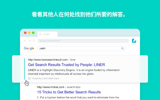 在LINER搜寻您想要的情报。 LINER搜寻只显示其他用户所信任的内容。