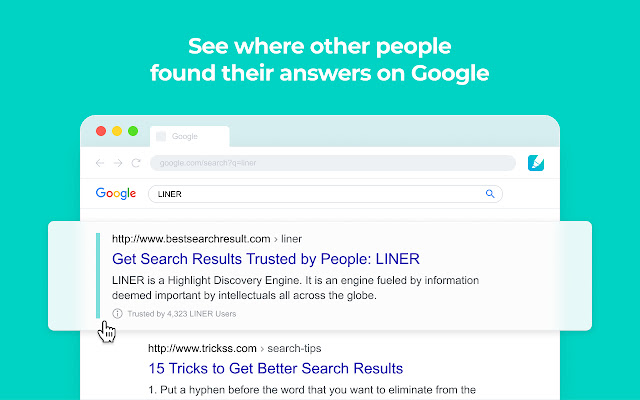 LINER利用整个网路作为资讯来源,然而LINER将仅提供给您受到多数人信赖的搜寻结果。
