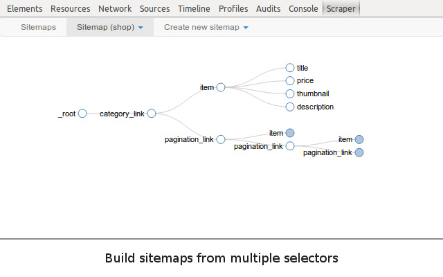 Web Scraper 使用由选择器组成的模块化结构,它指示爬虫如何遍历目标站点以及提取哪些数据。由于这种结构,从现代和动态网站(如 Amazon、Tripadvisor、eBay)以及鲜为人知的网站中挖掘数据变得毫不费力。