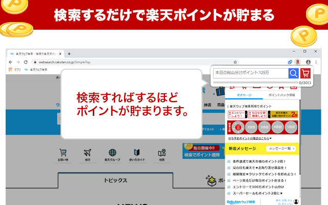 只需搜索,您将每天赚取乐天超级积分!