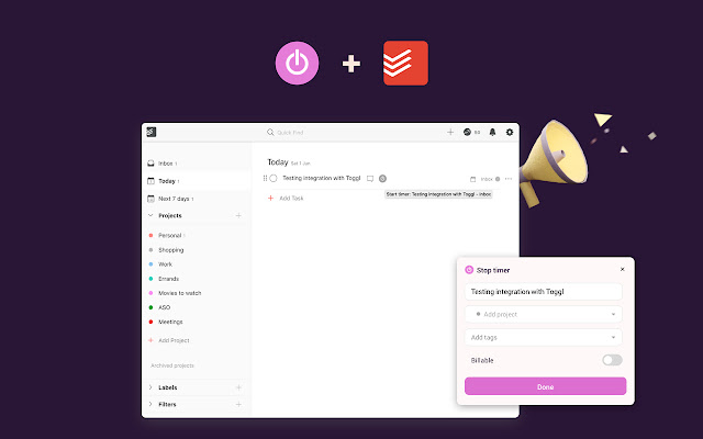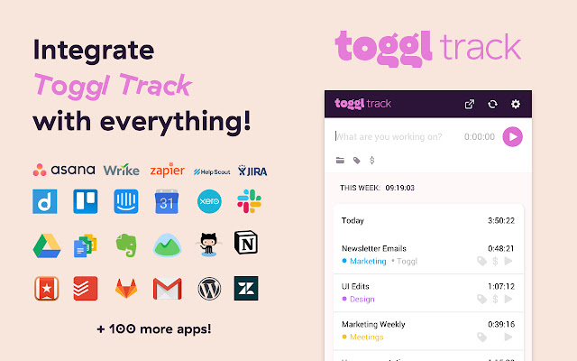 4. 您将很快注意到您最喜欢的生产力工具中的 Toggl Track 扩展