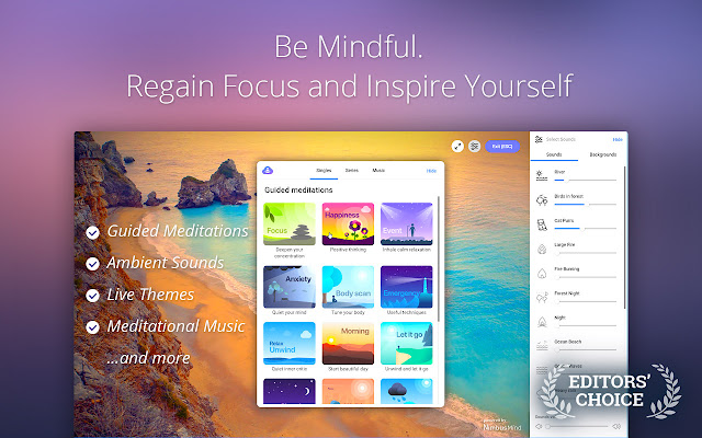 疲倦和疲惫?感觉紧张,你的工作效率为零?打开一个新页面,Live Start Page 扩展程序将打开冥想模式:10-15 分钟查看最好的动态壁纸到自然之声将使您恢复良好状态。想从你的冥想中得到更多吗?