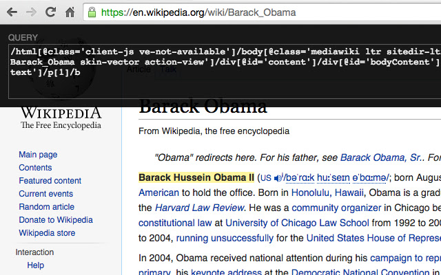 3. 将鼠标悬停在页面上的元素上时按住 Shift。查询框将不断更新以显示鼠标指针下方元素的 XPath 查询,结果框将显示当前查询的结果。