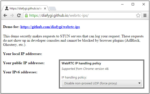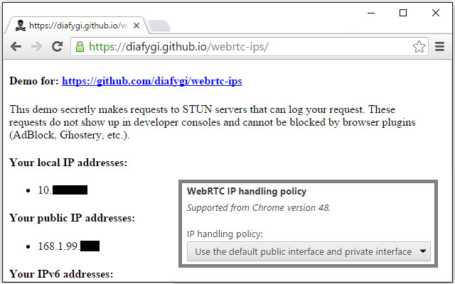 在这里测试泄漏 - https://diafygi.github.io/webrtc-ips/