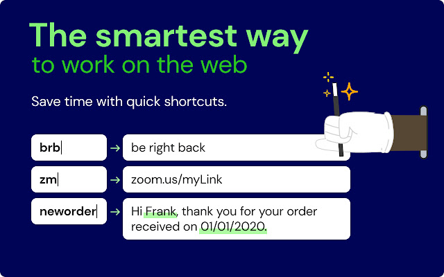 最受好评的 Chrome 文本扩展器。扩展您键入的内容,每周节省 5 小时以上。 250,000+ 用户