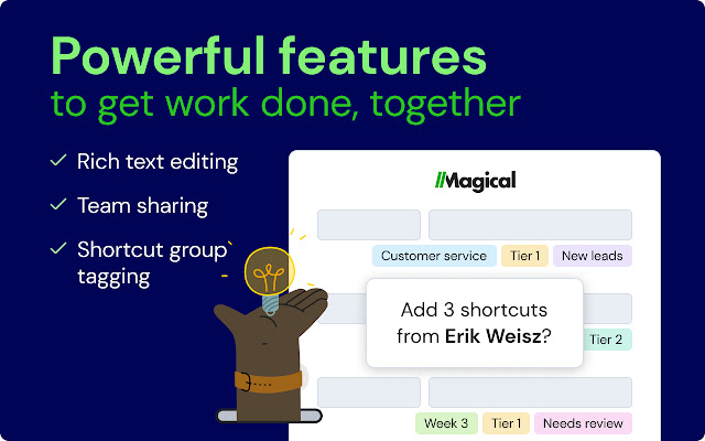 - 与您的团队共享:单独或通过标签与您的同事共享您的快捷方式,以确保整个团队的一致性