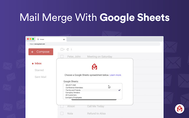 *邮件与来自 Google 表格的数据合并。