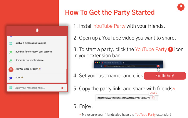 YouTube Party是一个Chrome扩展程序,用于观看与朋友同步的YouTube视频。