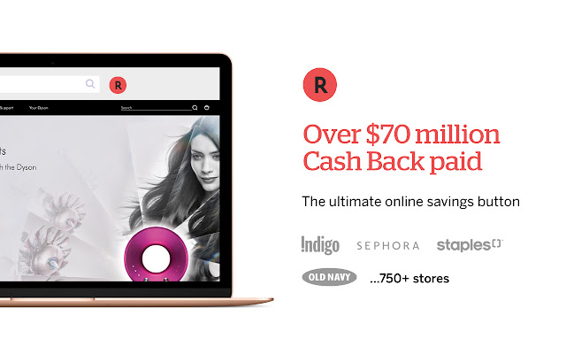 Rakuten Canada Button 在参与的商店提供自动现金返还提醒。没有麻烦。不再错过现金返还!