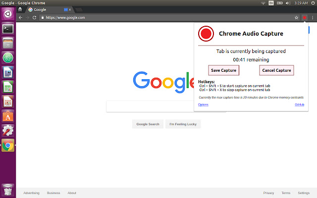 此扩展程序捕获当前选项卡上的音频,并在捕获完成后将输出文件保存在您的计算机上
