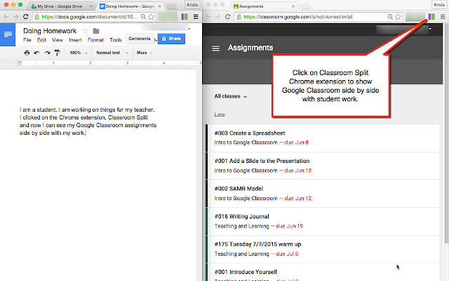让您的学生安装此扩展程序,以允许学生将他们的 Google 课堂路线与他们的工作并排放置