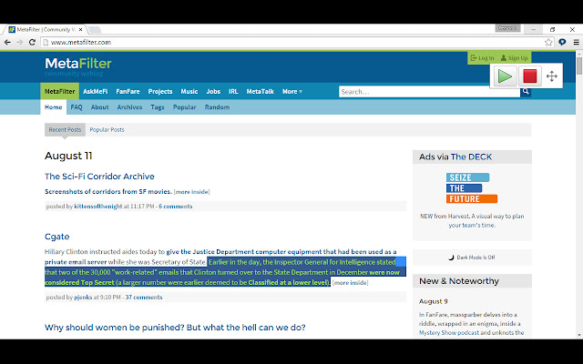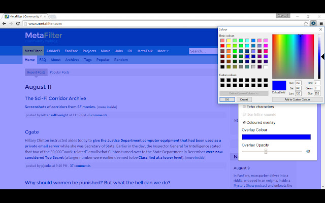 打开彩色覆盖,使页面着色为您认为最容易阅读的颜色 - 白色文本上不再有刺眼的黑色。