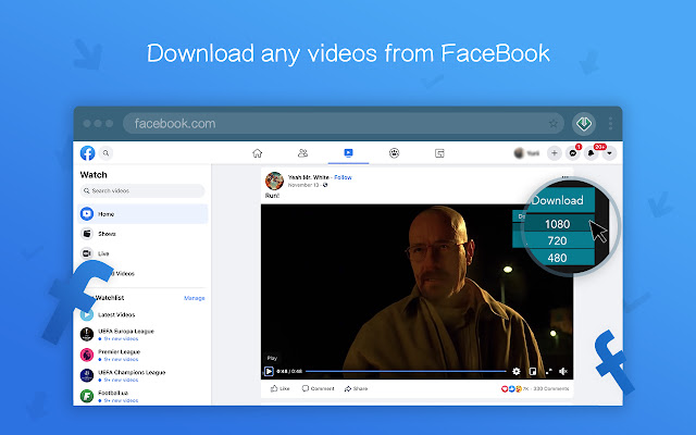 Our extension lets you save multiple versions in HD and SD from many popular video websites!