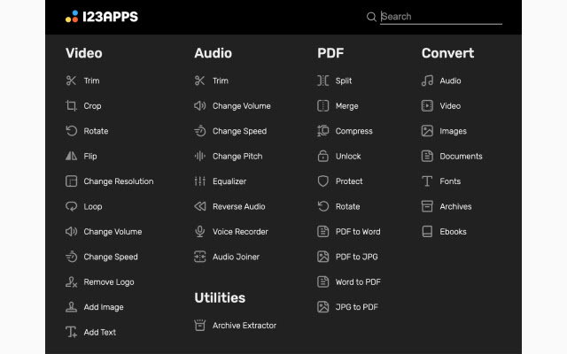 一组易于使用的网络应用程序,用于音频和视频编辑、处理 pdf 和文件转换。