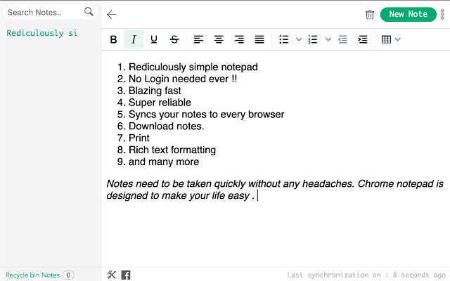 Chrome Notepad 是一个非常简单的 Chrome 记事本扩展程序,可以将笔记同步到您的所有 Chrome 安装!