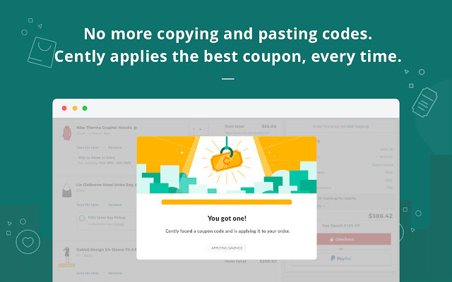 你有没有搜索过优惠券代码?你不会了!每次您在线购物时,Cently 都会自动为您发现那些难以找到的优惠券代码。