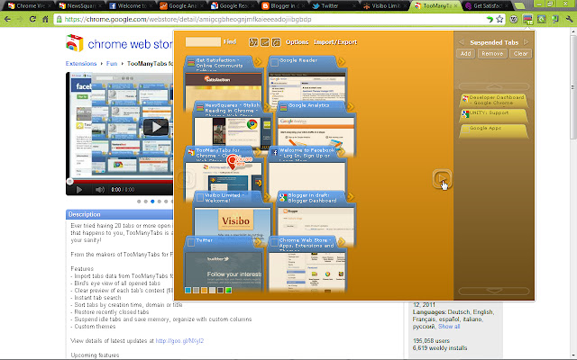 试过在 Chrome 中打开 20 个或更多标签页吗?你甚至看不到标签的图标,更不用说标签标题了!如果您遇到这种情况,TooManyTabs 是管理您的选项卡、减少选项卡溢出并保存您的理智的必备扩展程序!