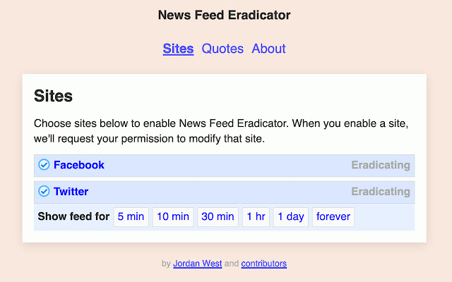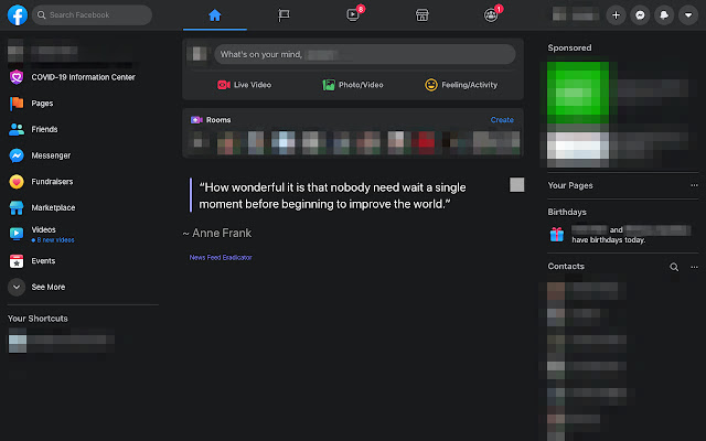News Feed Eradicator 删除了 Facebook、Twitter 和其他社交网络中最令人上瘾的部分 - 提要 - 并用鼓舞人心的引语取而代之。您仍然可以像往常一样使用其他功能,只是不会被吸引到注意孔中。