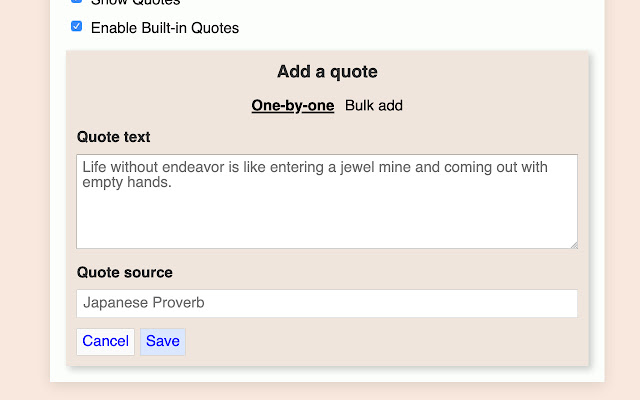 - 全新的选项页面,允许您查看、添加或删除任何自定义报价以及启用/禁用内置报价。