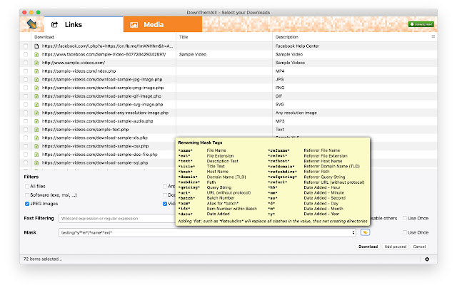 高级用户还会喜欢使用重命名掩码,它可以让您自动分配名称(甚至是下载文件夹中的子文件夹)、快速过滤甚至自定义、可重复使用的过滤器。