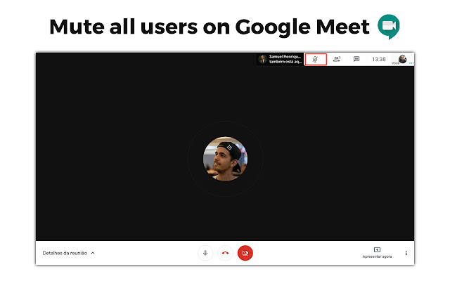 现在*已更新* 可与最新版本的 Google Meet 配合使用。单击图标将所有用户静音或单击 CTRL+M 将所有用户静音。