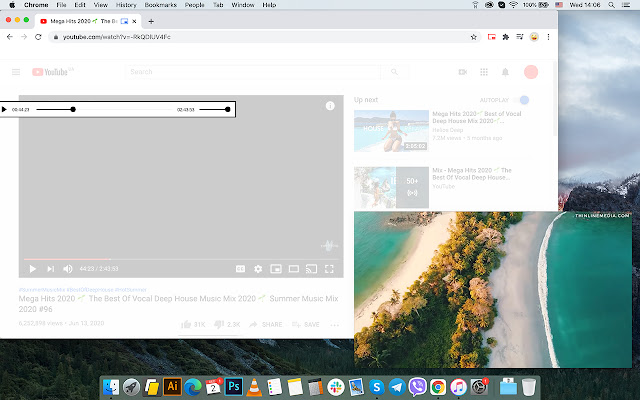 单击该图标后,所选视频将在浏览器外的迷你播放器中打开,具有原始播放器的所有功能和一般播放视频控件。完全自定义的设置假设可以根据需要调整浮动窗口的大小并将其设置在屏幕上的任何位置。
