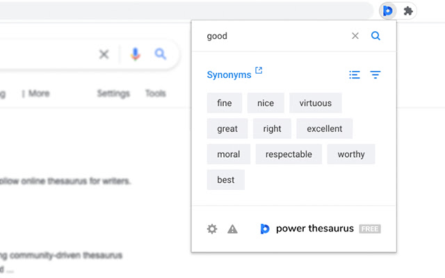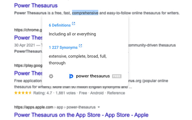获取任何单词的最佳同义词、反义词、定义和其他结果!在 Google Docs、Medium、Facebook、Twitter 等网站上改写您的文本。