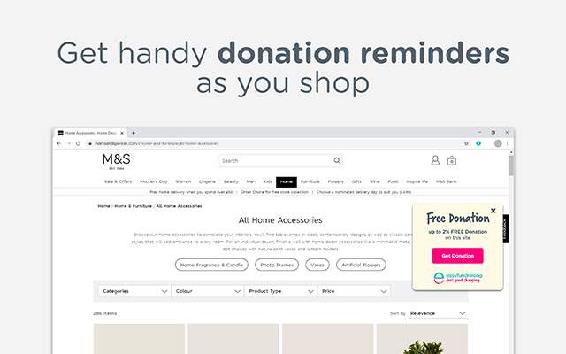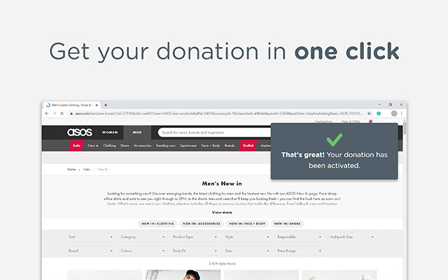 4,300 家在线零售商将为您的公益事业捐款,因此无论您购买什么商品,都可以赚取免费资金。每当您访问捐赠的在线零售商时,捐赠提醒都会提醒您,从而帮助您发现可以捐赠的地方。出现警报时,您可以一键激活捐赠,而无需离开您所在的网站。它还突出显示了在搜索引擎结果中可以提供捐赠的商店和网站。筹款从未如此简单!