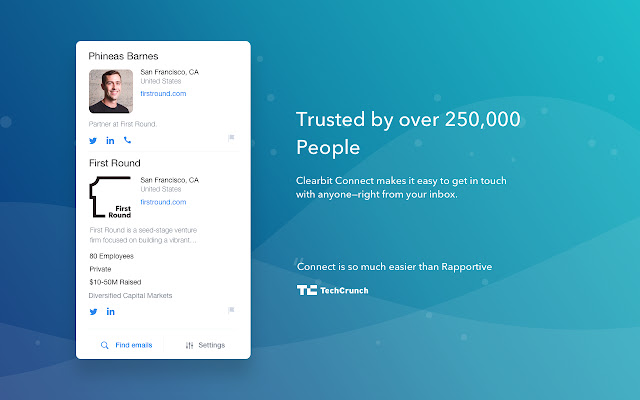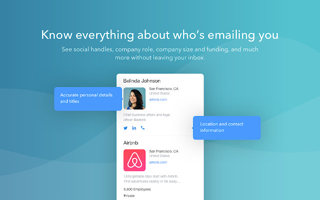 查找任何公司的员工电子邮件地址,并为向您发送电子邮件的任何人显示有用的上下文数据。