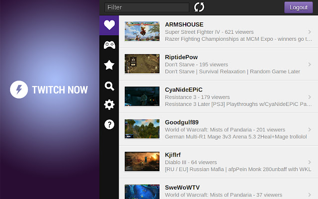 使用 Twitch Now 轻松跟踪您最喜欢的流,并在您最喜欢的流之一上线时收到通知。