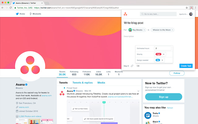 这个官方的 Asana Chrome 扩展使您能够从任何网页快速添加和搜索 Asana 任务。