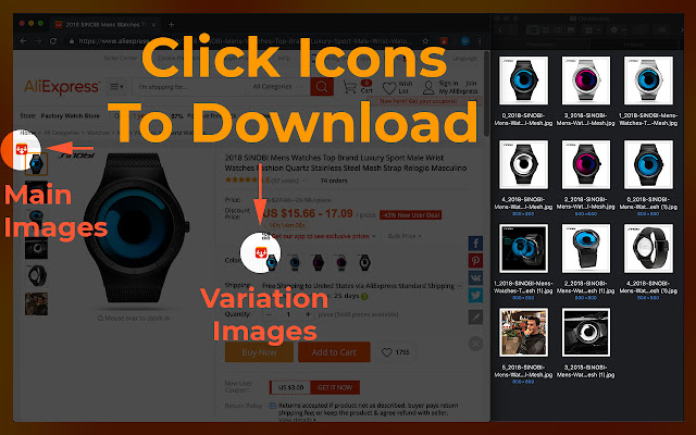 您将能够以尽可能最好的质量一键下载产品图片!