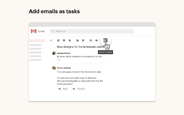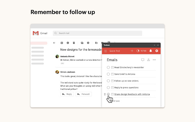 • 添加邮件为任务:终于,您可以通过添加邮件到Todoist以便稍后处理它们来让收件箱清空了。