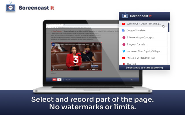 This tool can’t stream from desktop or web camera. Also, if you navigate away from the page the recording will be stopped.
